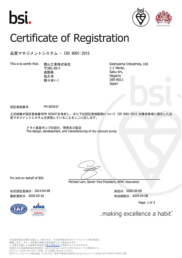 - 当社は、ドライ真空ポンプを通じて、お客様の役に立つ製品・サービスの提供をし、お客様満足向上を目指すと共に、環境を配慮した製品開発、省資源、省エネ、廃棄物の削減とリサイクルなどを考慮した活動を行い、環境汚染の予防に努めます。